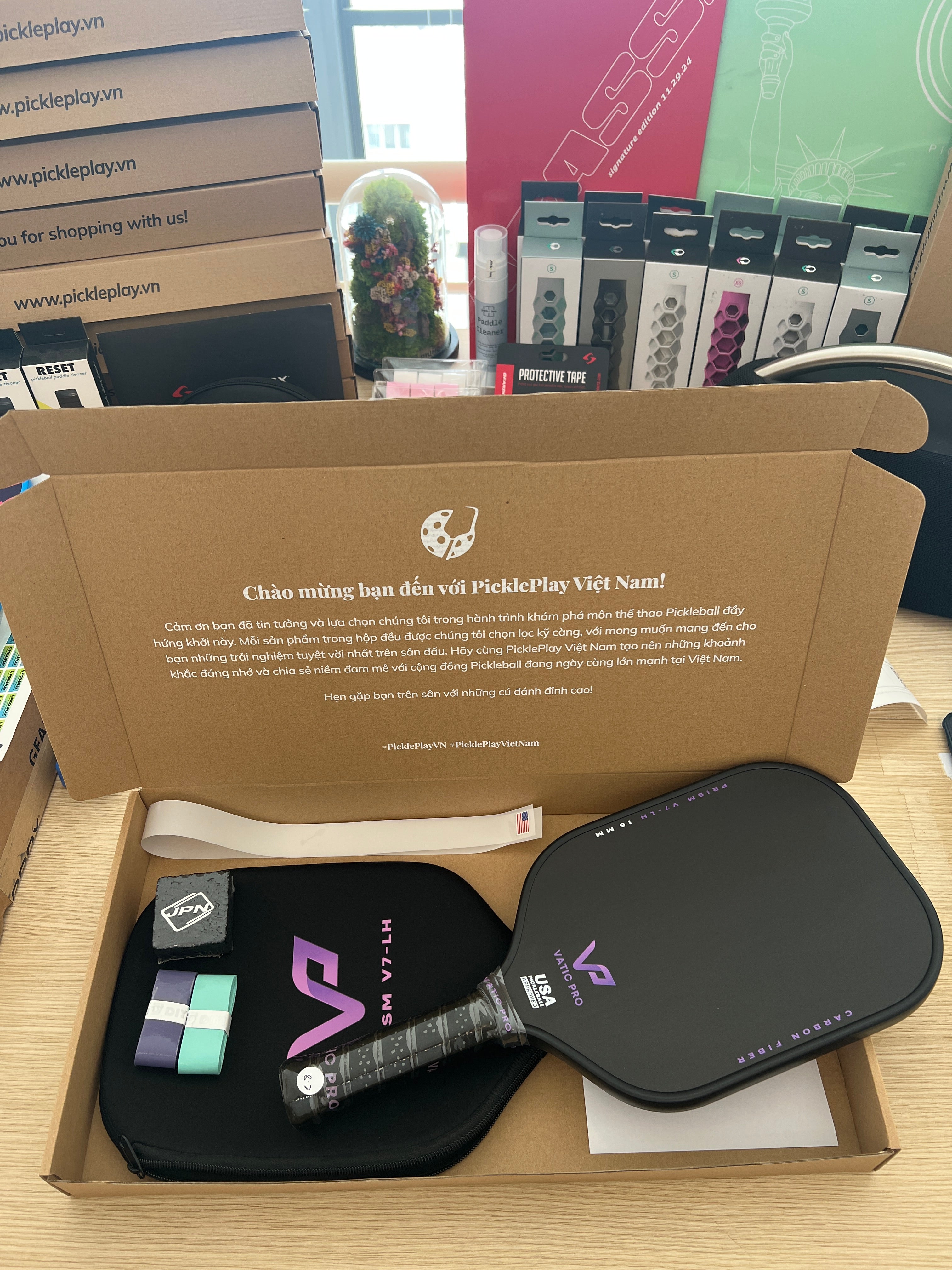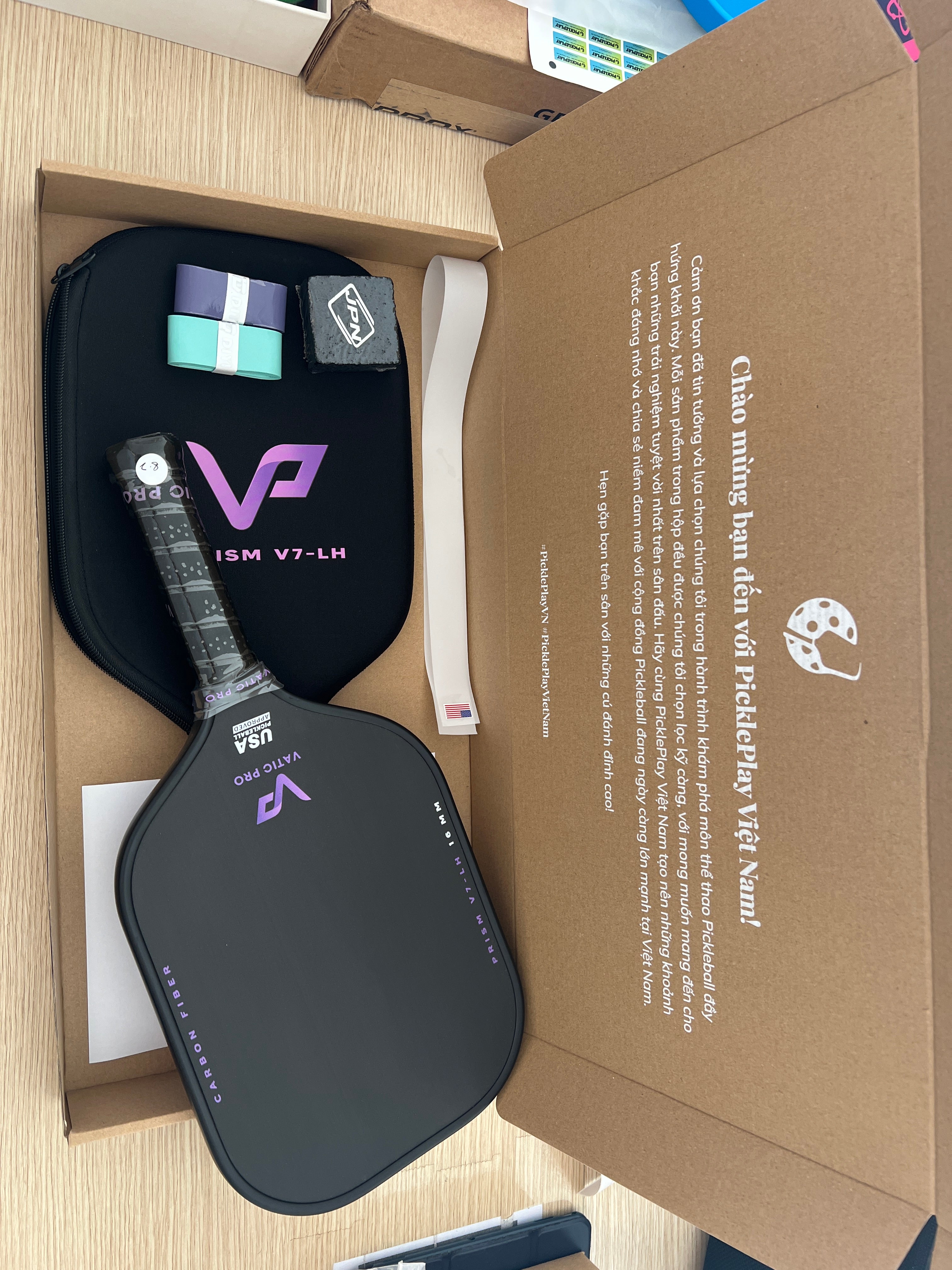 Realistic images taken from real products, without editing - helping you easily visualize the color, material and size of Vatic Pro Pickleball Racket - Alchemy in real life. PicklePlay Vietnam believes that real images are the most honest way for you to feel the product quality and shop with confidence.